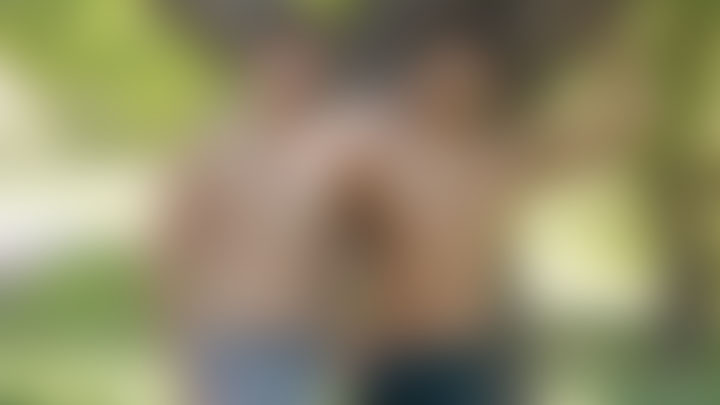 "God, your fucking ass is so tight," Blane tells him. Zeb pulls on his own hard dick. At Ashley's instruction, Blane fucks Zeb even harder, pounding him with strong slapping thrusts from behind. Zeb turns over onto his back, and Blane pushes his hard dick into him missionary-style. Zeb jerks his own cock while getting stuffed by Blane's dick. Ashley and Blane kiss as Zeb strokes himself, about to explode. "I'm gonna cum," Zeb exclaims, and unloads a series of creamy shots all over his abs and chest. Blane continues to fuck him hard, before pulling out and shooting streams of cum all over Zeb. Blane pumps the remaining load onto Zeb's still-hard cock, and Zeb grabs hold of Blane's stiff dick to stroke out the last drops. Blane leans forward and kisses Zeb, and both guys continue to stroke their cocks as all three look at Zeb's cum-drenched chest and cock.